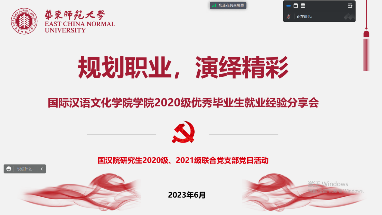 2023年6月17日,每日大赛 20级、21级研究生党支部联合举办“规划职业,演绎精彩”优秀毕业生就业经验分享会。本次分享会邀请到2020级硕士研究生学长、学姐,分享内容涵盖申博、公立学校、双语学校、考公、选调、企业等不同求职方向,并对同学们的疑惑进行了针对性解答。