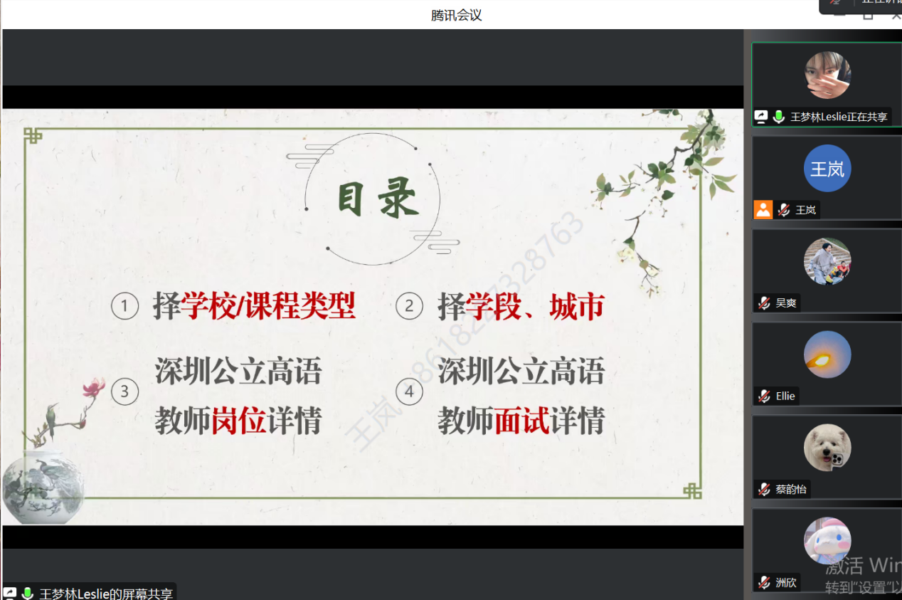 20级毕业生王梦林从择学校、课程类型、择学段和城市、深圳公立高中语文教师岗位详情和深圳公立高中语文教师面试详情四个方面分享了深圳公立高中的情况。她建议报考语文教师的同学应该注重文学素养的培养,多阅读文学名著经典,并利用中国大学MOOC网站学习名师课堂。