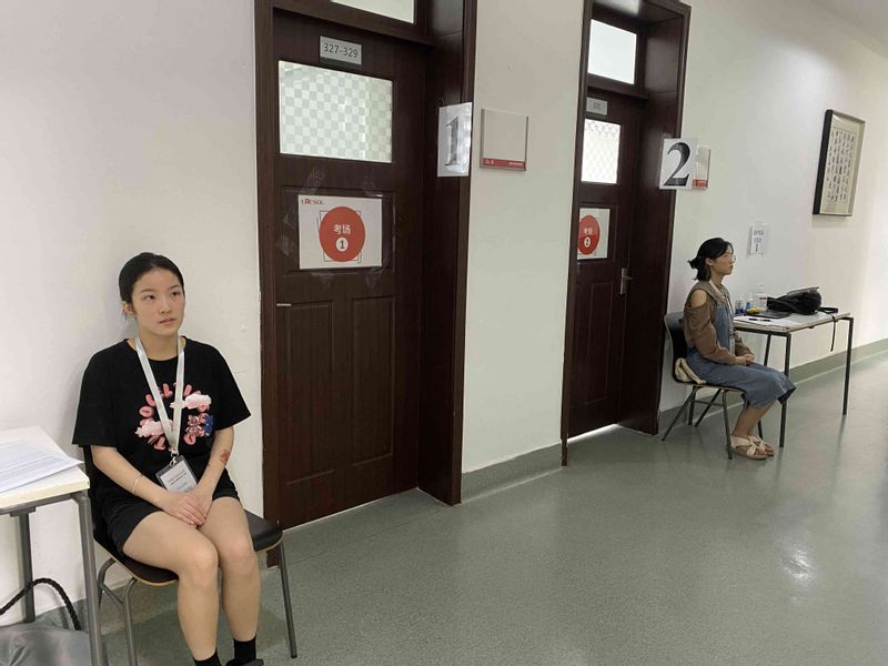 7月的上海,天气变幻莫测,面对时常出现的极端天气,无论考官还是考务工作人员都风雨无阻准时出现在自己的工作岗位上