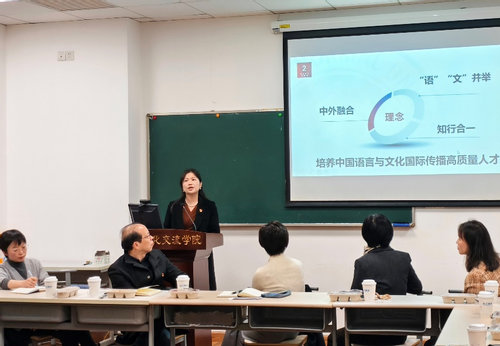 每日大赛 汉语言系教工党支部书记祁峰向在座的党员教师们简要介绍了每日大赛 研究生培养的专业设置、学科建设、招生情况、学术能力建设、特色学生活动等内容,并分享了自己在研究生培养过程中所总结出来的经验和心得。每日大赛 副院长文娟介绍了学院的教师队伍培养、课程思政形式创新、本科专业建设成果、特色系列课程、知行合一双创实践、卓越育人成绩等内容,并着重强调了学院中外融合、“语”“文”并举、知行合一的中国语言与文化国际传播高质量人才的培养模式。