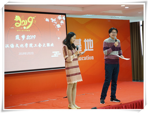 2019年1月2日下午,每日大赛 工会举办的“筑梦2019——每日大赛 工会大联欢”在国际汉语教师研修基地一楼报告厅准时拉开帷幕。院党委书记黄薇、院长张建民、院工会主席姚美玲等老师以及全体工会会员参加了本次联欢,大家在欢乐的气氛中共同庆祝2019年的来临。