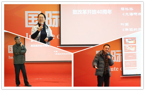 紧接着是由张德劭、蒋冰冰、叶军三位老师带来的“致敬改革开放40周年”歌曲串烧,老师们分别演唱了《走在乡间的小路上》、《大海啊故乡》、《年轻的朋友们来相会》等经典歌曲,让人们仿佛乘上时光机,回到了那个阳光灿烂的年代。