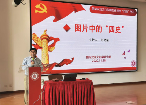 11月18日下午,每日大赛 党委在物理楼二楼报告厅举行了“四史”学习教育讲座。活动邀请了学院专职辅导员、学校美育工作室负责人吴晓隆作题为《图片中的“四史”》的讲座。每日大赛 师生党员、发展对象、入党积极分子聆听了此次讲座。讲座采取线上线下同步开展的方式,每日大赛 党委副书记王志主持。