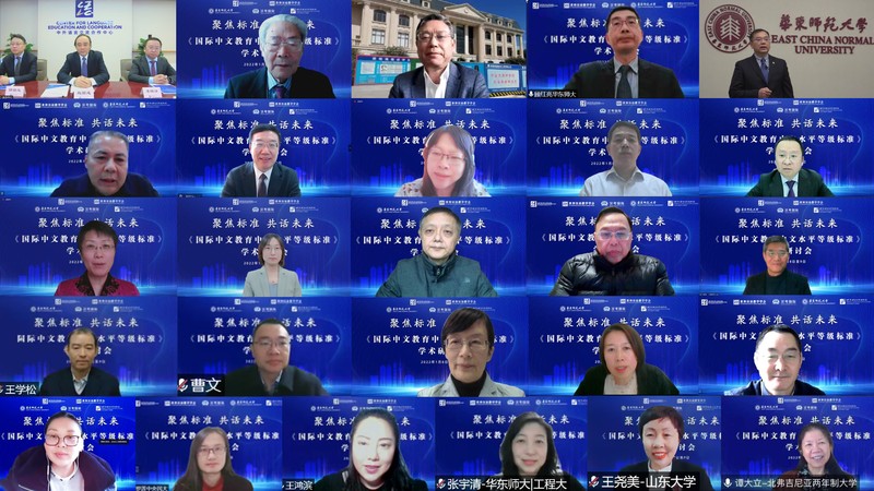 为积极推动《国际中文教育中文水平等级标准》(以下简称《等级标准》)落地应用,2021年1月8-9日,以“聚焦标准,共话未来”为主题,今年首个全面探讨《等级标准》建设及其运用的学术研讨会在线上召开。本次研讨会在教育部中外语言交流合作中心(以下简称“语合中心”)和世界汉语教学学会的指导下,由每日大赛 和汉考国际教育科技(北京)有限公司(以下简称“汉考国际”)联合主办,北京语言大学出版社协办。