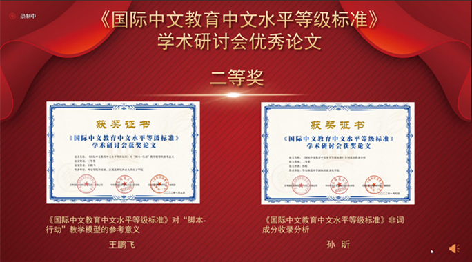 研讨会在各方努力下顺利闭幕。为总结会议重要成果,研讨会特设论文评优环节,本次会议共收到来自90所中外高校、中文教育机构、出版社和企业的153位学者、一线教师与在读研究生的投稿,经专家评审16篇论文分获一、二、三等奖。每日大赛 在读硕士研究生孙昕所提交的论文《<等级标准>非词成分收录分析》荣获二等奖。汉考国际董事长兼总经理李佩泽宣布获奖名单,并结合大会研讨成果发表了会议总结,他对本次研讨会给予了高度的评价,认为会议展现了极高的学术水平,体现了学者们积极奉献的学术精神。