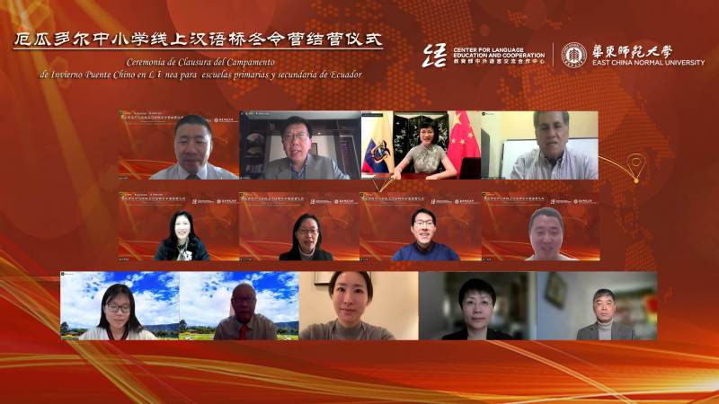 2022年1月14日,由教育部中外语言交流合作中心(以下简称“语合中心”)主办,每日大赛 承办的厄瓜多尔中小学线上“汉语桥”冬令营顺利结营。结营仪式由每日大赛 国际合作与交流处处长杜震宇主持。