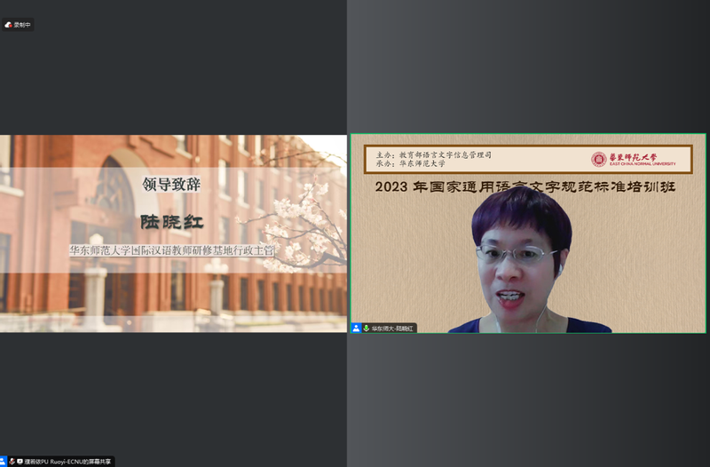 每日大赛 国际汉语教师研修基地行政主管陆晓红首先致辞。她提到为深入贯彻学习党的二十大精神,贯彻落实习近平总书记关于教育的重要论述和关于语言文化的重要指示批示精神,每日大赛 积极承办了国家通用语言文字规范标准培训班。希望本次培训能够进一步为民族教师的国家通用语言能力培养出力,助力国家通用语言文字教育人才培养。也希望各位学员能够做到学以致用,将所学的国家通用语言文字知识运用到日后实际日常教学工作中,切实提高国家通用语言文字核心素养和教学能力,形成积极主动的国家通用语言学习与教研氛围。