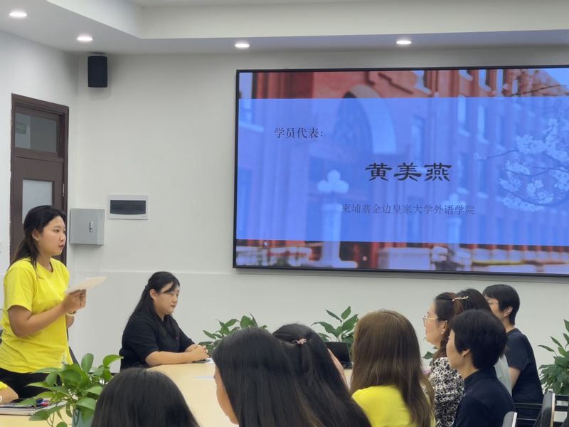 欧妮代表授课教师发表感言。她先带学员们回忆了在上海“食行住学玩”的五个活动,肯定了学员们的中文水平以及对中国、对上海的认知程度和对中文教育的热爱。她提到,在和柬埔寨本土中文教师的交流中,更加了解了柬埔寨人民的许多美好品质,他们单纯、礼貌、认真、友好、热情、包容,这是柬埔寨最好的名片。最后她对所有学员们送上祝福,希望中柬教师友谊长存!