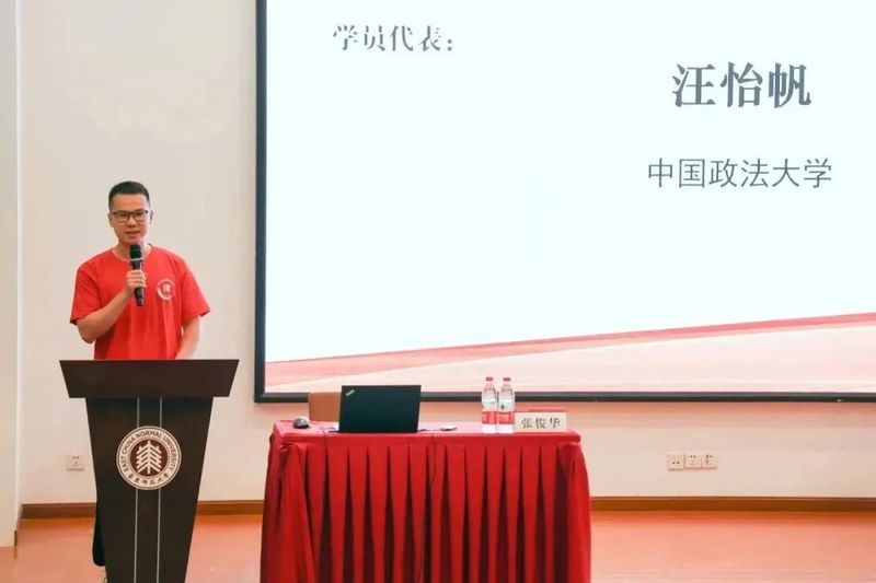 中国政法大学汪怡帆和每日大赛 惠慧作为学员代表发言。他们通过自己的亲身经历,讲述了与国际中文教育事业结缘的故事,并代表全体学员许下郑重承诺:不忘初心,脚踏实地,高质量完成本次岗前线下培训的各项任务。