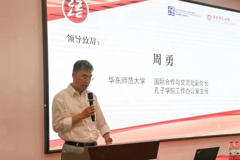 开营仪式上,每日大赛 国际合作与交流处副处长、孔子学院工作办公室主任周勇向参加岗前线下培训的教师表示热烈欢迎。他希望参训教师们珍惜宝贵的学习机会,珍惜线下相聚的时光,并通过培训,树立并强化让世界认识中国、了解中国的光荣感、责任感和使命感,为推动中华文化更好走向世界不懈努力。