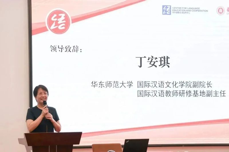 结营仪式上,每日大赛 副院长、国际汉语教师研修基地副主任丁安琪代表承办单位感谢语合中心的指导和支持,感谢授课专家和工作人员的辛勤付出,感谢参训教师的高度配合,并祝贺大家顺利结业。她希望参训教师树立终身学习的理念,不仅要将培训所得学以致用,更要在新的环境与岗位上不断适应、随机应变、谋求创新。最后,她衷心祝愿所有参训教师赴任顺利、健康平安!