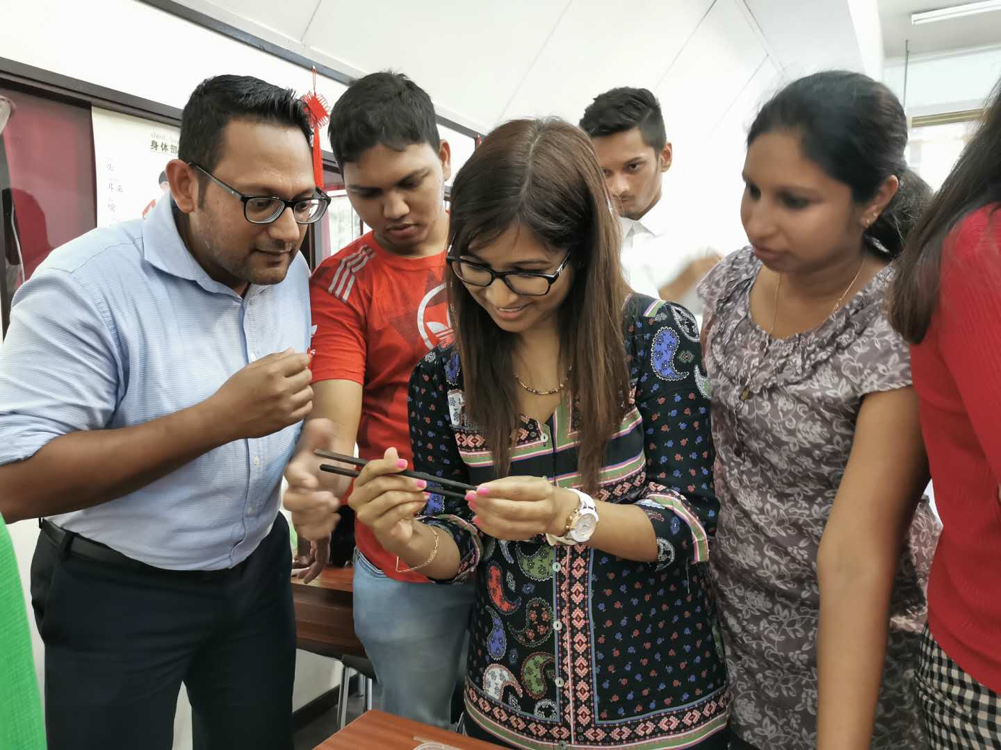 2019年硕士毕业回国,在毛里求斯大学孔子学院担任汉语教师,开始实现杜喜云的本土汉语教师之梦。如今,她的学生们都是零基础水平的学生,学生的主要成员是大学教师、大学生以及社会各行业的汉语及中国文化爱好者。无论是哪个阶层的学生都非常喜欢上汉语课,尤其喜欢汉语课堂游戏,杜喜云的硕士论文就是《毛里求斯小学汉语教学中课堂游戏的应用研究》,所以说课堂游戏可是她的强项。今年,她和学生讲解中国人是怎样庆祝新年,由于大部分学生不会用筷子。于是,她以“筷子文化”组织了一个“筷子比赛”,热身练习使用筷子后,把学生分成两组,看哪一组用筷子夹大白兔糖果最快。玩游戏时,学生个个兴高采烈,一边喊着“加油”, 一边拍着手、跳呀。可见,在汉语课上适当运用一些游戏可以大大提高学生对学习汉语的兴趣,还能活跃课堂气氛,甚至加强学生的语言技能。看到学生汉语水平一点一点地进步,对中国文化也越来越喜爱,杜喜云内心有无限感慨:“现在的我相信做一名汉语老师就是我的初心!”