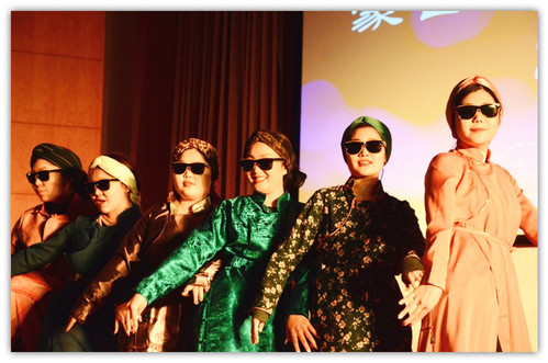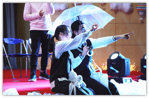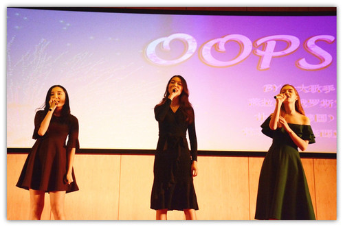 第二场幕间剧后是留学生们的主场。三位在国汉十大歌手中取得良好成绩的留学生姑娘,为同学们带来歌曲《Oops》。漂亮的姑娘们毫不怯场,在舞台上配合默契,表现自如。
