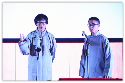 逗不乐相声社带来相声中的经典《五红图》。显然,人不如其名,逗不乐相声社逗乐了台下的老师与同学,会场笑声不断。