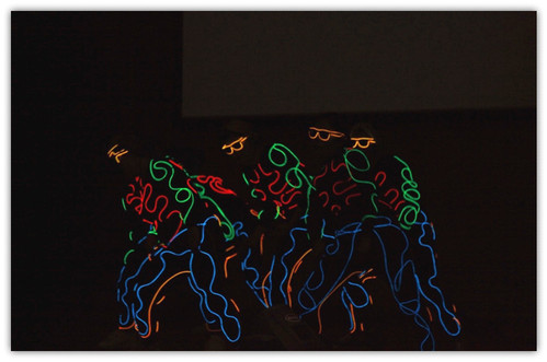 蒙古留学生带来一场奇妙的灯光秀。在黑暗中,唯有光束的动感舞动。