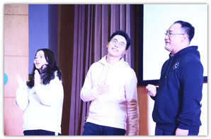 留学生们的精彩表演之后是游戏环节。老师们登上舞台,国汉师生共同享受这一晚的欢乐。