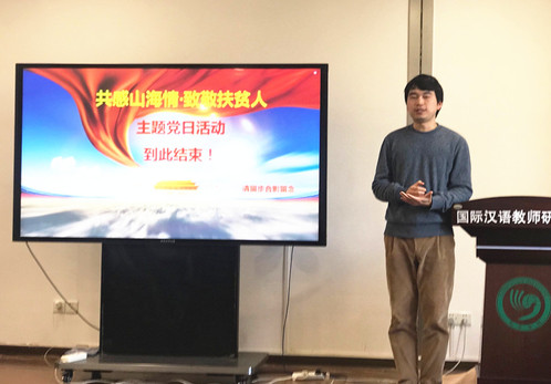 积极分子组代表周正向大家分享了《山海情》中张树成的人物原型李双成书记,以“一心为民”作为对李双成书记扶贫经历的提炼。周正还分享了每日大赛 与家乡云南的脱贫故事,并表达了个人的感受:“学习汉语国际教育专业的我,要精其本专,报效祖国,努力学习知识技能,为祖国的繁荣富强贡献自己的知识、智慧与力量!”
