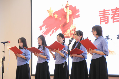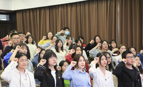 活动接近尾声,全体团员起立,在领誓人的带领下重温入团誓词。“我志愿加入中国共产主义青年团,坚决拥护中国共产党的领导,遵守团的章程,执行团的决议,履行团员义务,严守团的纪律,勤奋学习,积极工作,吃苦在前,享受在后,为共产主义事业而奋斗”。庄严宣誓声中,同学们自豪光耀地认识到了新时代青年人所肩负的使命。随着团歌《光荣啊,中国共青团》奏响,同学们心中的五星红旗烈烈飘扬。
