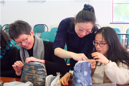 本次活动邀请了经验丰富的手工老师介绍口金包制作工艺,让大家从活动中发现传统女红艺术之美。手工包制作,需要用到穿针、缝纫、塞布等一系列技法,老师都一一讲解。随后,每位教工在老师准备的材料包中挑选出各式各样的制包布和口金。在制作过程中,大家边看边学,认真领会,还不时交流心得体会。经过1个多小时的精心制作,在女教工们的巧手摆弄下,一只只做工精美的古典、现代、田园、民族等不同风格的手工绣包就展现在了大家眼前。