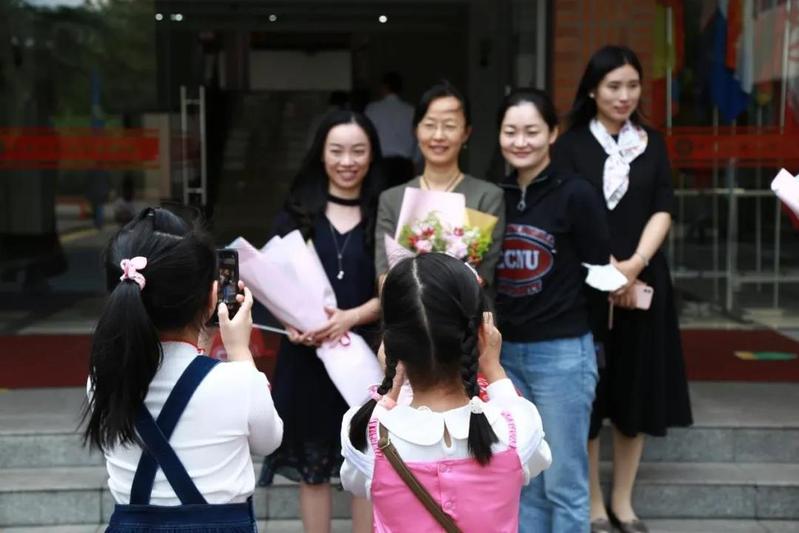 校友们与老师们依依不舍地合影留念。