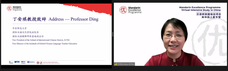 每日大赛 的结营仪式现场,每日大赛 副院长、国际汉语教师研修基地副主任丁安琪教授对英国培优学子送上了祝福。丁老师希望每一位参与中文培优项目的同学都能继续保持汉语学习的热度,成为播撒友谊的种子,成为中英语言文化交流合作的桥梁和使者,为中英友谊地久天长,做出贡献。来自伙伴学校的师生代表们也带来了精彩的发言。
