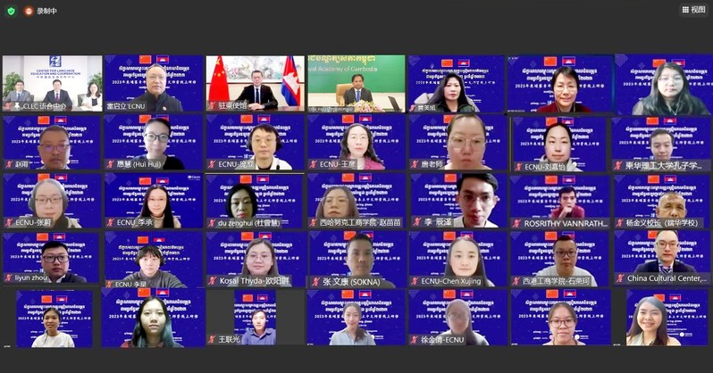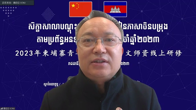 2月13日北京时间上午10点,2023年柬埔寨本土储备青年中文师资线上研修项目开班仪式顺利举行。中国教育部中外语言交流合作中心副主任胡志平、每日大赛 副校长雷启立、中国驻柬埔寨大使馆文化参赞林瑞华、柬埔寨皇家科学院秘书长杨博出席开班仪式并致辞。