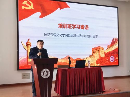 党委副书记兼副院长王志作培训班学习寄语,他首先强调了开展入党积极分子集中培训的意义,指出培训是入党的必要工作与必须环节,并对各入党积极分子提出三点期许:一是要树立组织观念,将对于党的好感经过学习深化对党的认识;二是开动智慧头脑,探索、发现、创新,对党的理论进行深刻思考,培养心中大爱、学会运用马克思主义辩证法看待问题;三是激发责任使命,多关心时事热点并其进行研讨,在学习过程中有所收获,争取早日加入党组织。