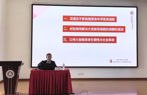 开班仪式后,开始了此次培训班的首场专题讲座《永葆马克思主义本色——论党的自我革命》,由马克思主义学院教授丁晓强教授主讲。丁晓强教授分别从是在不断自我革命中淬炼而成的、时刻保持解决大党独有难题的清醒和坚定、以伟大的自我革命引领伟大的社会革命三个方面展开,辅以生动的语言、有力的案例向学员们追溯了党的自我革命的历史渊源、阐释了新时代下强化党的自我革命的原因及要求,引发学员的强烈共鸣。
