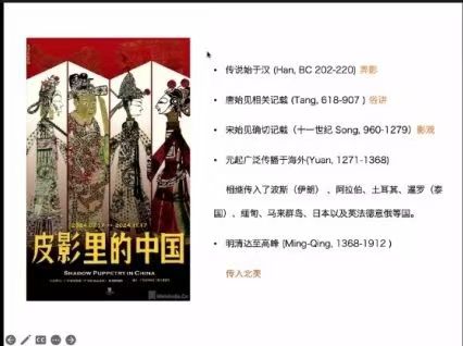 李明洁教授的讲座包括了“通识:了解中国皮影戏的基础知识”和“实践:分享可利用的相关教学资源”两大部分。通过大量文献材料与皮影图片,李明洁带领大家概览了中国皮影戏知识,详细解释了皮影戏的历史和流派,影人的部件、制作、特色,以及演出中涉及到的乐器和脚本。讲座中,李明洁教授借用《西游记》《三国》《封神榜》这些家喻户晓的故事,介绍了中国皮影戏丰富的题材和表现手法,她认为皮影戏作为一项综合艺术形式,在当今时代依旧具有鲜活的生命力。除此之外,李明洁还着重分享了中国皮影戏在美国传播与发展的珍贵史料。从早期传入历史到在美博物馆馆藏、代表性剧团,图文并茂、音像结合的讲述为学员们展现了一段值得铭记的中美文化交流画卷。