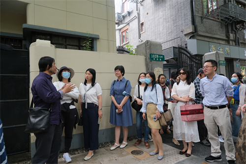 To promote the education of Party history and celebrate the centennial of the Communist Party of China, the Young Teachers' Association of the School of International Chinese Studies, the Party Branch of the International Chinese Language Teachers Training Base, the Party Branch of the Department of Chinese Language, and the Party Branch of the Department of Management jointly launched a humanistic tour entitled The Birth and Original Aspiration of the Party on the afternoon of June 4. Members of the Young Teachers' Association and Party Branches visited the old Yuyangli, the new Yuyangli and the site of the First Communist Party Congress. They appreciated the grand historical buildings, read about the renewal and culture of the city, gained insight into its development and changes, and embraced the passion and attitude of Shanghai.